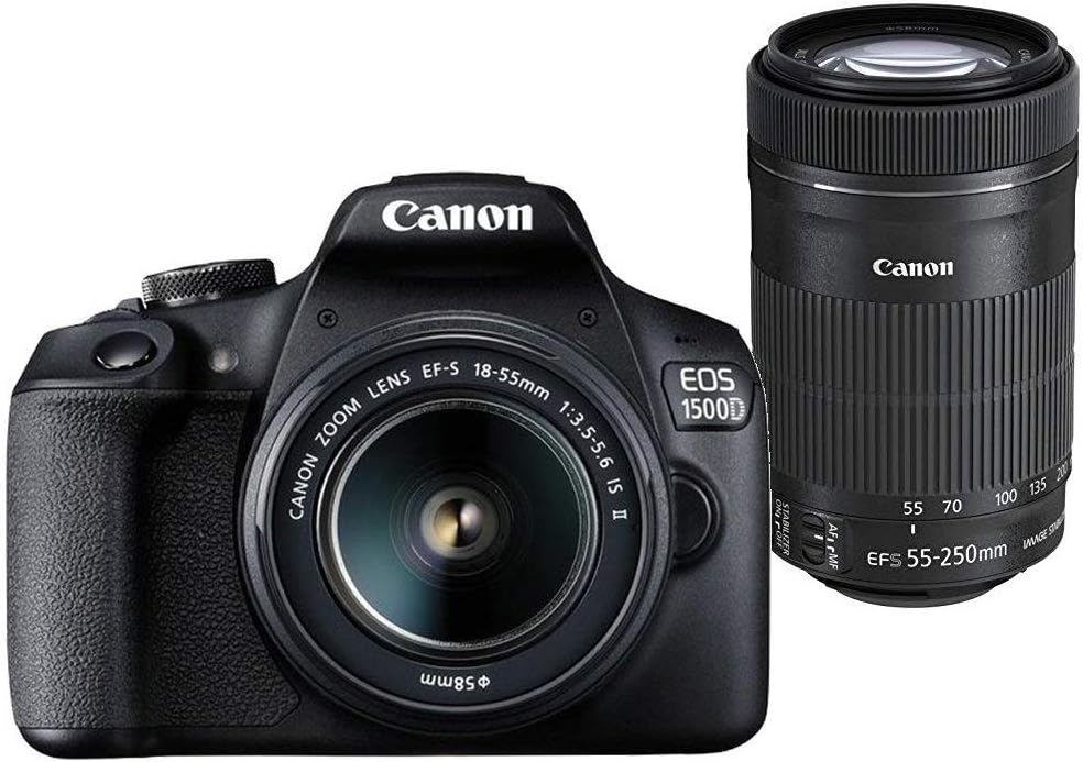 Canon EOS 1500D 24.1MP Digital SLR Camera (Black) with 18-55 and 55-250mm is II Lens, 16GB Card and Carry Case